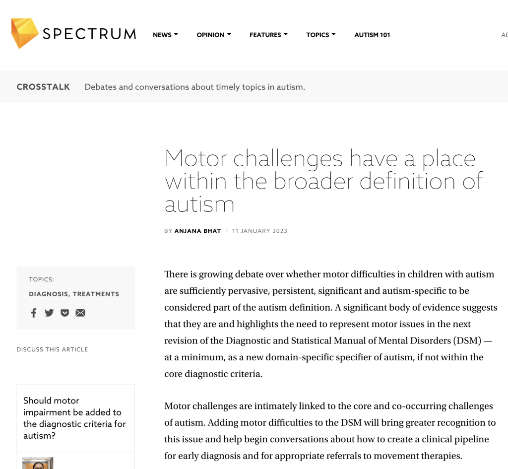 [Commentary] Anjana Bhat, faculty in the CDS-administered Delaware LEND program, argues that motor delays/challenges should be considered part of the definition of autism.